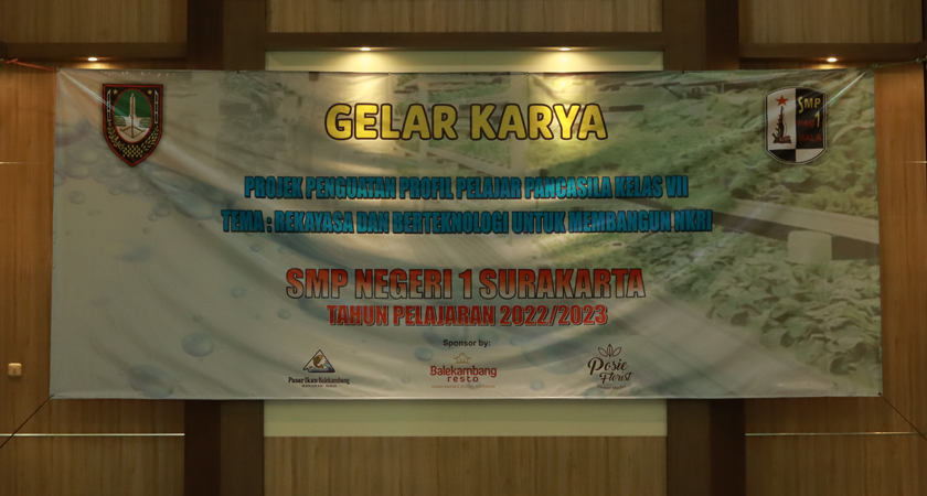 SMP Negeri 1 Surakarta menyelenggaarakan kegiatan Gelar Karya Projek Penguatan Profil Pelajar Pancasila (P5) pada Selasa (22/11/2022). Kegiatan tersebut merupakan penutup rangkaian kegiatan P5 dengan tema Rekayasa dan Berteknologi Untuk Membangun NKRI. Kegiatan Gelar Karya dibuka secara resmi oleh Kepala Dinas Pendidikan Kota Surakarta, Ibu Dian Rineta, ST.M.Si. Kegiatan dilaksanakan berpusat di lapangan upacara SMP Negeri 1 Surakarta dan dihadiri oleh seluruh peserta didik, komite, dan orang tua peserta didik.